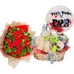 frutas -pera - 1 un. frutas -maça - 1 un. tipos de pães zero glúten - 2 un. sachê de café gourmet bagio - 1 un. frutas -uvas - 1 un. chocolate haoma - 1 un. chocolate zero - 1 un. suco villa piva - 1 un. buquê de rosa colombianas 30 rosa - 1 un.