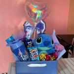 caixa de bis - 1 un. bombons - 2 un. bis xtra 45g - 1 un. garrafinha stich - 1 un. fini tubo - 1 un. balão personalizado coração - 1 un. cesta decorada resistente - 1 un. pelúcia stich musical - 1 un. tubete de chocolate - 1 un.