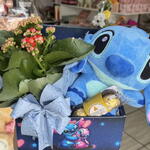 kalanchoe - 1 un. ferrero 3 unidades - 1 un. stitch 20cm - 1 un. saco celofane incolor + laço - 1 un.