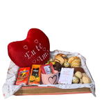 Esta encantadora cesta inclui um croissant de chocolate e outro de presunto e queijo, acompanhados de aproximadamente 100g de pão de queijo, um bolinho e um delicioso pão de mel. Para refrescar, uma salada de frutas servida em um delicado potinho de vidro. Os momentos doces ficam por conta de três bombons Ferrero Rocher, um suco Del Valle, um Nescau e um chá especial. Acompanha também uma caneca personalizada, uma pelúcia em formato de coração e um cartão com mensagem personalizada. Tudo é cuidadosamente disposto em uma bandeja de MDF decorada, embalada com saco celofane e finalizada com um laço encantador. Certifique-se que a pessoa à ser presenteada estará no local, no período para a entrega. Caso não tenha ninguém para receber no endereço seu pedido vai retornar e será cobrada uma nova taxa para retornar ao local de entrega.