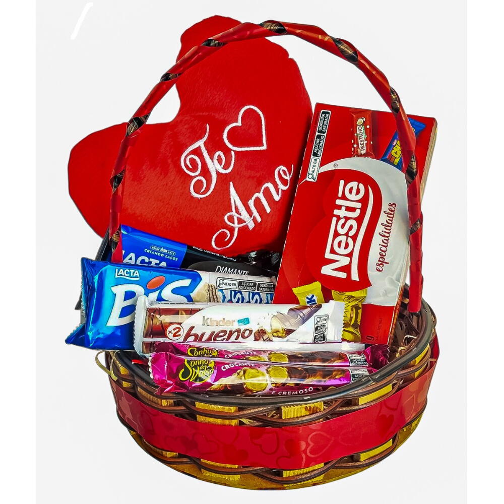 Esta cesta de chocolate é uma verdadeira explosão de sabor e alegria! Recheada com uma variedade de deliciosos chocolates, ela é um presente ideal para qualquer amante de doces. O coração de pelúcia acrescenta um toque de carinho e ternura, tornando-o perfeito para momentos especiais. A caixa de bombons traz sabores que despertam nossos sentidos, enquanto a barra de chocolate e o Bis oferecem sabores clássicos que nunca decepcionam. Por último, mas não menos importante, o Kinder bueno, com sua irresistível combinação de chocolate e avelãs, e o Sonho de Valsa, recheio de flocos crocantes, amendoim e um leve toque de caramelo, promete agradar até aos paladares mais exigentes. Tudo isso lindamente embalado em uma cesta, ideal para presentear em qualquer ocasião. Produto 4002