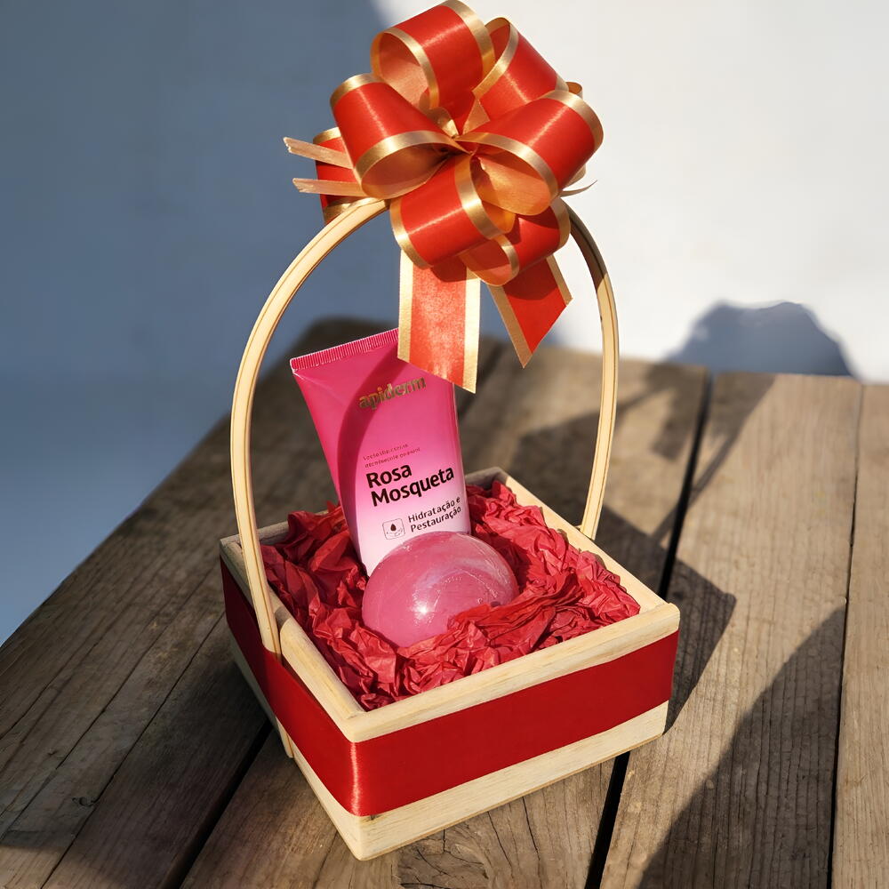 Surpreenda quem você ama com esta elegante cesta presente, cuidadosamente preparada para oferecer uma experiência de cuidado e hidratação profunda. A cesta, feita em madeira clara e decorada com uma sofisticada fita de cetim vermelha com detalhes dourados, traz um toque de charme e requinte. Contém: - Loção Ultra-Hidratante Apiderm Rosa Mosqueta: fórmula especial que promove hidratação intensa e restauração da pele, deixando-a macia e revitalizada. - Sabonete ou esfoliante sólido (rosa): ideal para complementar o cuidado diário, proporcionando limpeza suave e refrescante. Perfeita para presentear em datas especiais, aniversários, ou simplesmente para demonstrar carinho com um presente que une beleza, cuidado e elegância. Acompanha embalagem pronta para presente, para surpreender desde o primeiro momento. Garanta já este presente exclusivo e faça quem você ama se sentir especial!