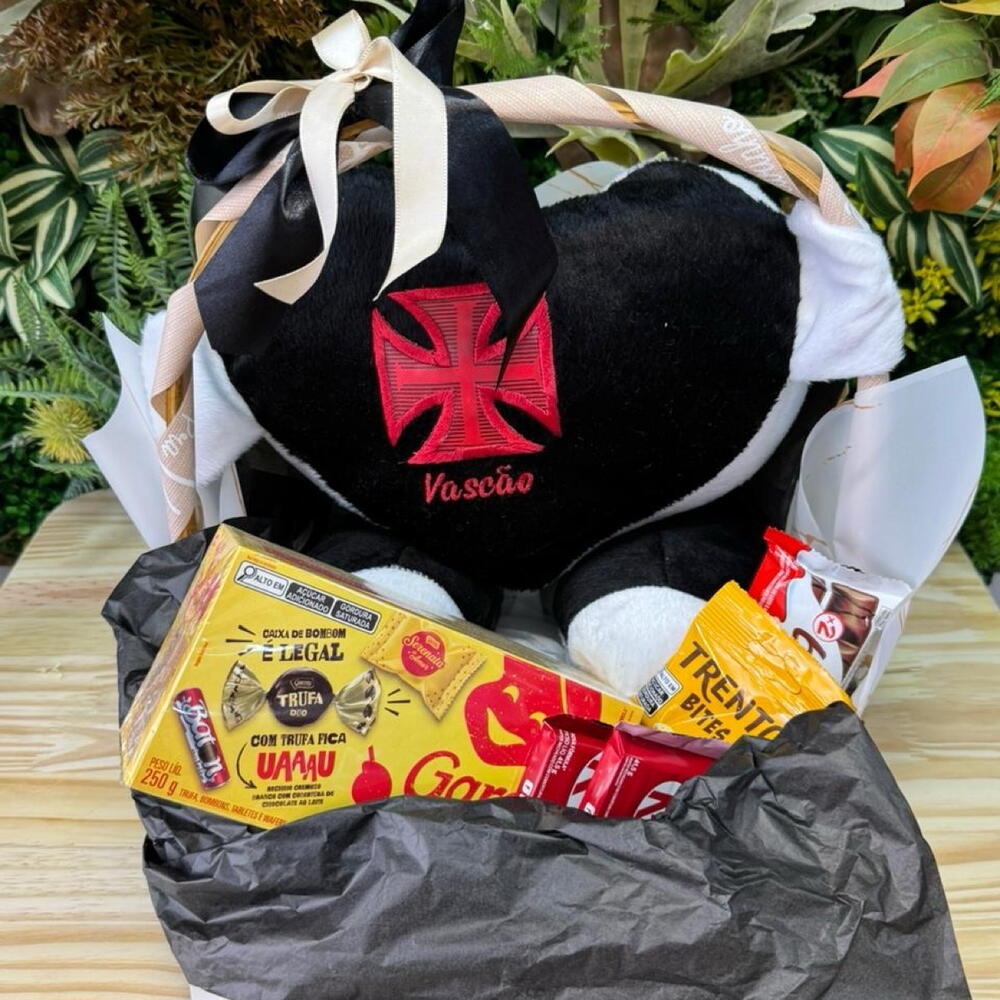 A nossa Cesta de Chocolate é a escolha perfeita para surpreender quem ama. Esta deliciosa seleção inclui 1 unidade de Kinder Bueno e 2 unidades de KitKat para quem é apaixonado por chocolates cremosos. Além disso, também contém 1 unidade de Trento Bites para dar aquele toque crocante. Para tornar a experiência ainda mais completa, a cesta é acompanhada por 1 pelúcia Vasco - o presente perfeito para os adoradores do time. E, claro, a nossa cesta não estaria completa sem 1 caixa de bombom Garoto. Este é um presente que combina a doçura do chocolate com o carinho de se dar algo especial.