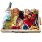 Este pacote de presente indulgente vem com uma seleção diversificada de guloseimas requintadas e um vinho à sua escolha, perfeito para qualquer comemoração. Contém uma uva verde sem caroço e um morango fresco e suculento. Para diversificar, adicionamos um pacote de batatas fritas e um mix de castanhas que prometem satisfazer o paladar. O pacote também inclui azeitonas saborosas, acompanhadas de queijos gorgonzola e muçarela para agradar aos verdadeiros amantes do queijo. Os embutidos, como presunto e salame, são os acompanhamentos perfeitos. E claro, não poderíamos esquecer as torradas crocantes e um delicioso bolo de aniversário. Tudo apresentado em uma bandeja de tamanho M prática e elegante. Produto 3001