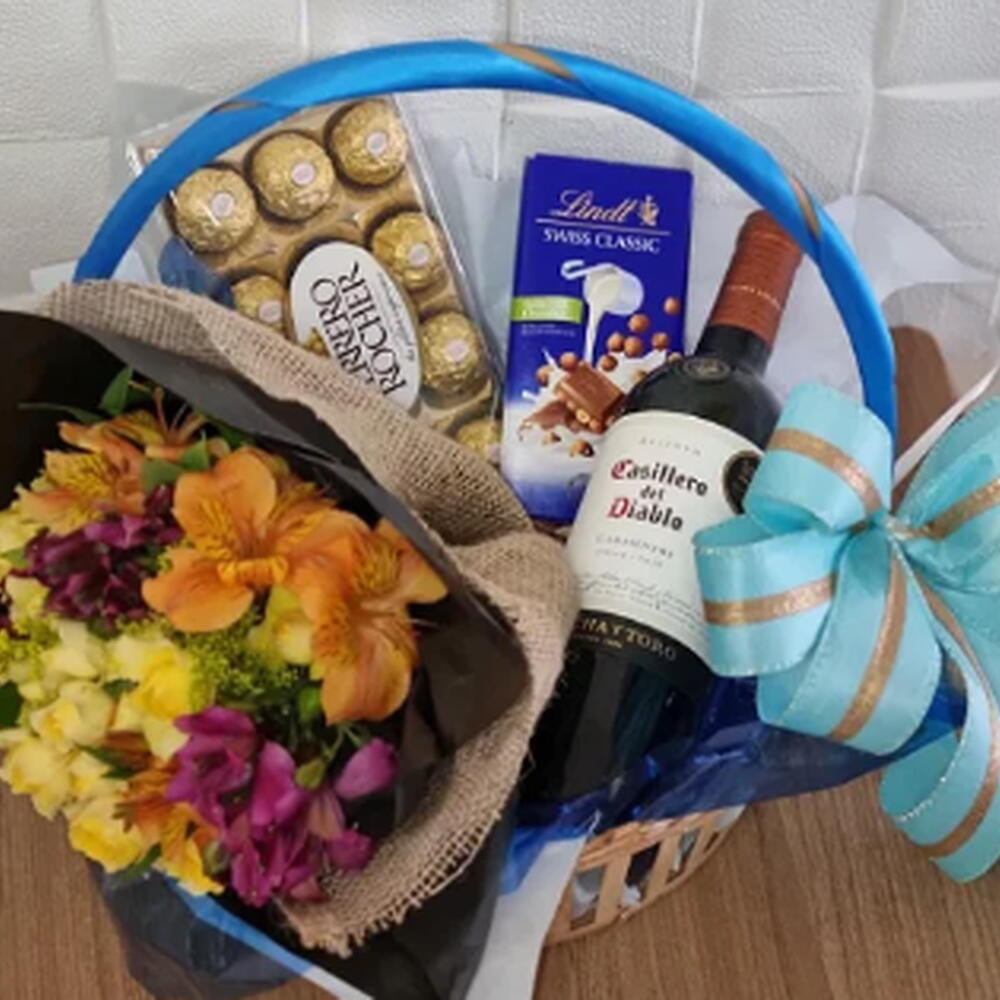 ferrero rocher - 12 un. vinho chileno - 1 un. buquê misto p - 1 un. cx de chocolate suíço lindth - 1 un.
