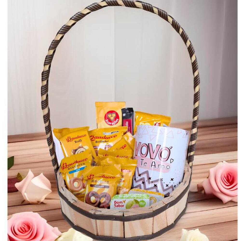 Cesta Vovo de Cafe da Manhã com Caneca Vo "Melhor Vovo do mundo" - Encante