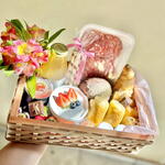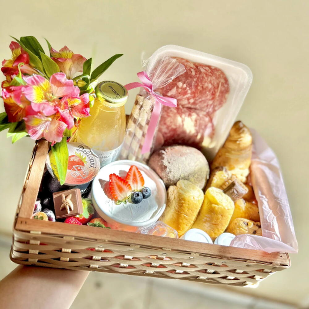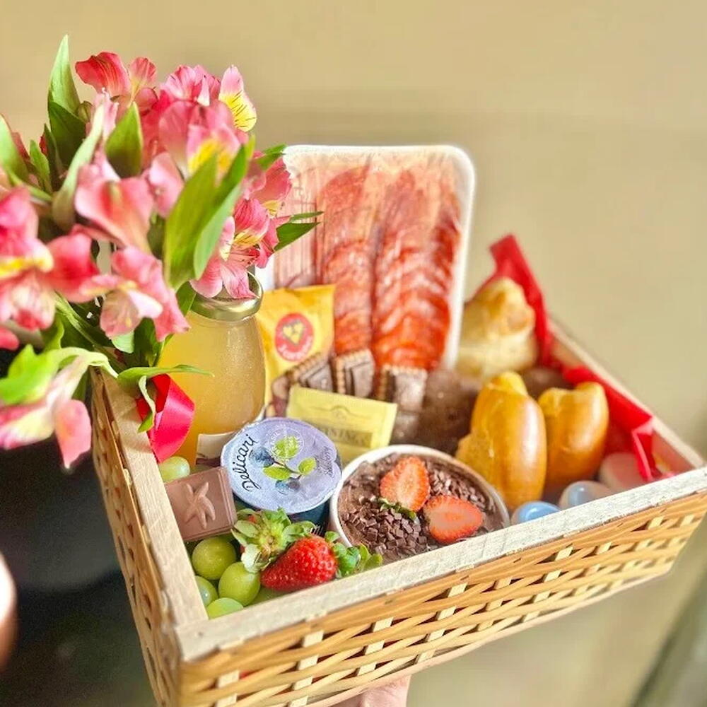 Celebre os laços especiais com uma cesta de café da manhã cuidadosamente montada, perfeita para demonstrar seu carinho e apreço. A mimo de luxo é uma versão compacta da experiência amorosa completa, repleta de deliciosos sabores e momentos inesqueciveis. Desde croissants frescos até frutas suculentas, cada item é selecionado com amor e carinho. Desperte sua mãe na manhã do dia das mães de forma especial. Esta cesta é uma expressão calorosa de gratidão e amor, trazendo um pouco do aconchego reconfortante do lar para o início do dia dela,