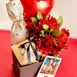 arranjo de flores naturais - 1 un. caixa de bombom ferrero rocher - 1 un. caixa 15x15 com tampa - 1 un. 1 balão coração - 1 un. vinho 750ml (verificar opções) - 1 un.