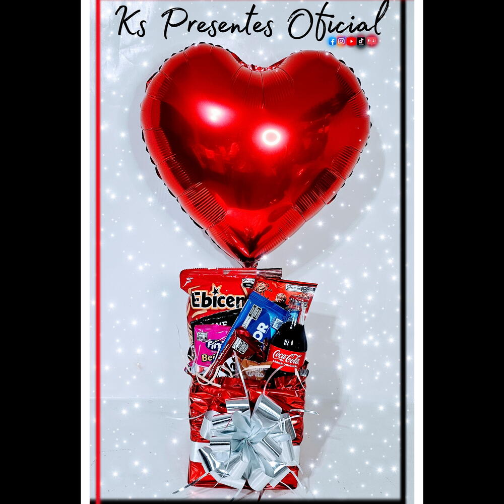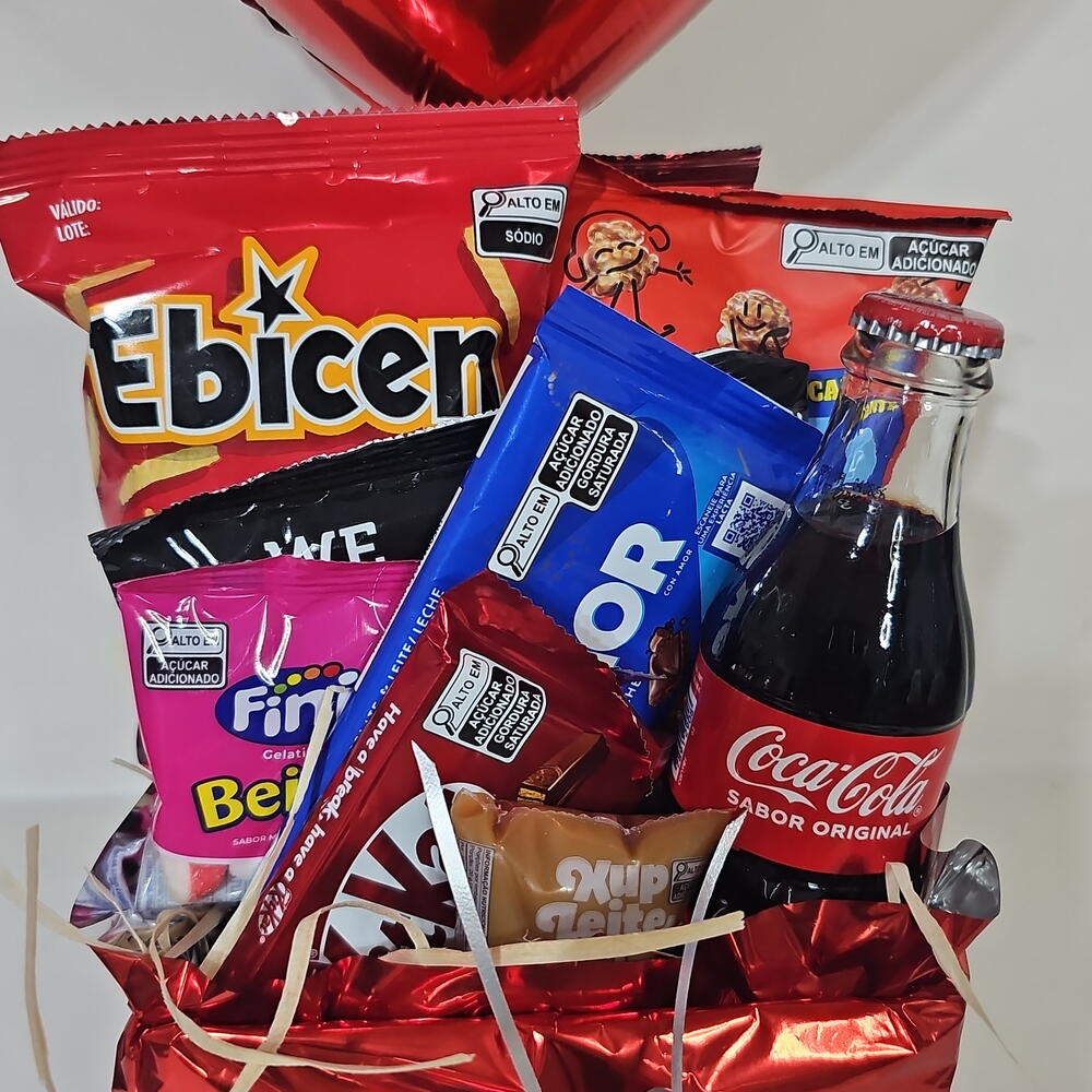 Apresentamos a cesta perfeita para surpreender quem você ama! Esta linda e elegante cesta vem com um balão vermelho em formato de coração, símbolo do carinho e da paixão. Embalada em papel metálico vermelho e finalizada com um laço prateado sofisticado, ela traz uma seleção especial de deliciosos snacks e uma refrescante garrafa de Coca-Cola sabor original. Ideal para presentear em ocasiões românticas, aniversários ou para demonstrar afeto de forma inesquecível. Um presente completo, cheio de sabor e amor, que vai encantar e conquistar qualquer pessoa!