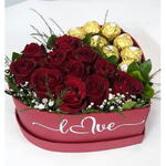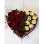 Este presente encantador é composto por 8 deliciosos Ferrero Rochers, embalados em uma caixa cartonada em formato de coração, perfeita para expressar seu amor e apreço. Juntamente com eles vem um belo arranjo de rosas, tornando este presente ainda mais especial. Ideal para oferecer em qualquer ocasião, este presente é uma combinação perfeita de sabor e beleza.