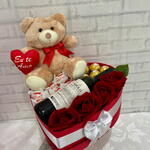 Surpreenda quem você ama com este elegante e romântico presente! ❤️ Uma linda caixa em formato de coração, cuidadosamente decorada com fita de cetim, reúne tudo o que há de mais especial: um delicado ursinho de pelúcia segurando um coração com a mensagem “Eu te Amo”, rosas vermelhas que simbolizam paixão, chocolates irresistíveis e uma garrafa de vinho para tornar o momento ainda mais inesquecível. Perfeito para ocasiões como Dia dos Namorados, aniversários, pedidos especiais ou simplesmente para demonstrar carinho de forma única e sofisticada. ✨ Contém: Ursinho de pelúcia com mensagem romântica Rosas decorativas vermelhas Chocolates finos Garrafa de vinho Caixa premium em formato de coração com acabamento em fita 💝 Um presente completo, pronto para emocionar e encantar!