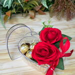 rosa artificial - 1 un. caixa de acrílico - 1 un. ferrero rocher 3unid - 1 un.