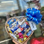 Descubra o perfeito presente de chocolate com esta elegante Cesta de Chocolate. Embalada com serenidade e esmero, esta cesta contém 14 deliciosos bombons, ricamente presenteados. Adornada com um lindo laço para uma apresentação requintada e um coração de MDF para adicionar um toque pessoal. Além disso, é acompanhada por uma tag, permitindo a personalização da sua mensagem de presente. Tudo isso habilmente embrulhado em celofane de alta qualidade. Este é o presente definitivo para qualquer amante de chocolate.