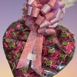 laço - 1 un. coração de madeira - 1 un. bombom sonho de valsa 20g - 20 un. embalagem celofane - 1 un.