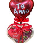 Coração recheado com chocolates e pelúcia delicada, finalizado com laço vermelho. Balão “Te Amo” para declarar sentimentos de forma inesquecível. Perfeito para surpreender e transformar qualquer dia em uma data especial.