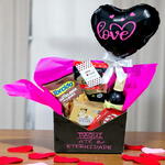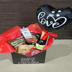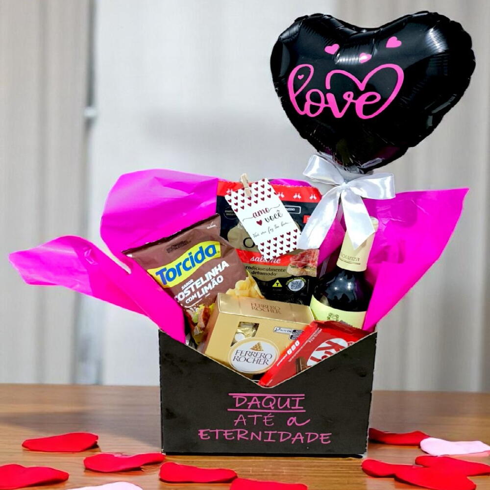 kit kat - 1 un. ferrero rocher - 4 un. salgadinho torcida ou similar - 1 un. vinho mioranza suave - 1 un. sachê de salaminho defumado - 1 un. caixa envelope personalizada - 1 un. balão personalizado (consultar) - 1 un.