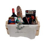 queijo gorgonzola - 1 un. vinho chileno reserva casas del bosque 750ml - 1 un. sardella italiana - 1 un. baguete rustica - 1 un. queijo parmesao - 1 un. linguiça portuguesa - 1 un. presunto alemao - 1 un. mix de oleaginosas no vidro com tampa de rolha - 1 un. cookies pepitos - 4 un. caixote de pinus ceasa m - 1 un. guardanapo de algodão - 1 un.