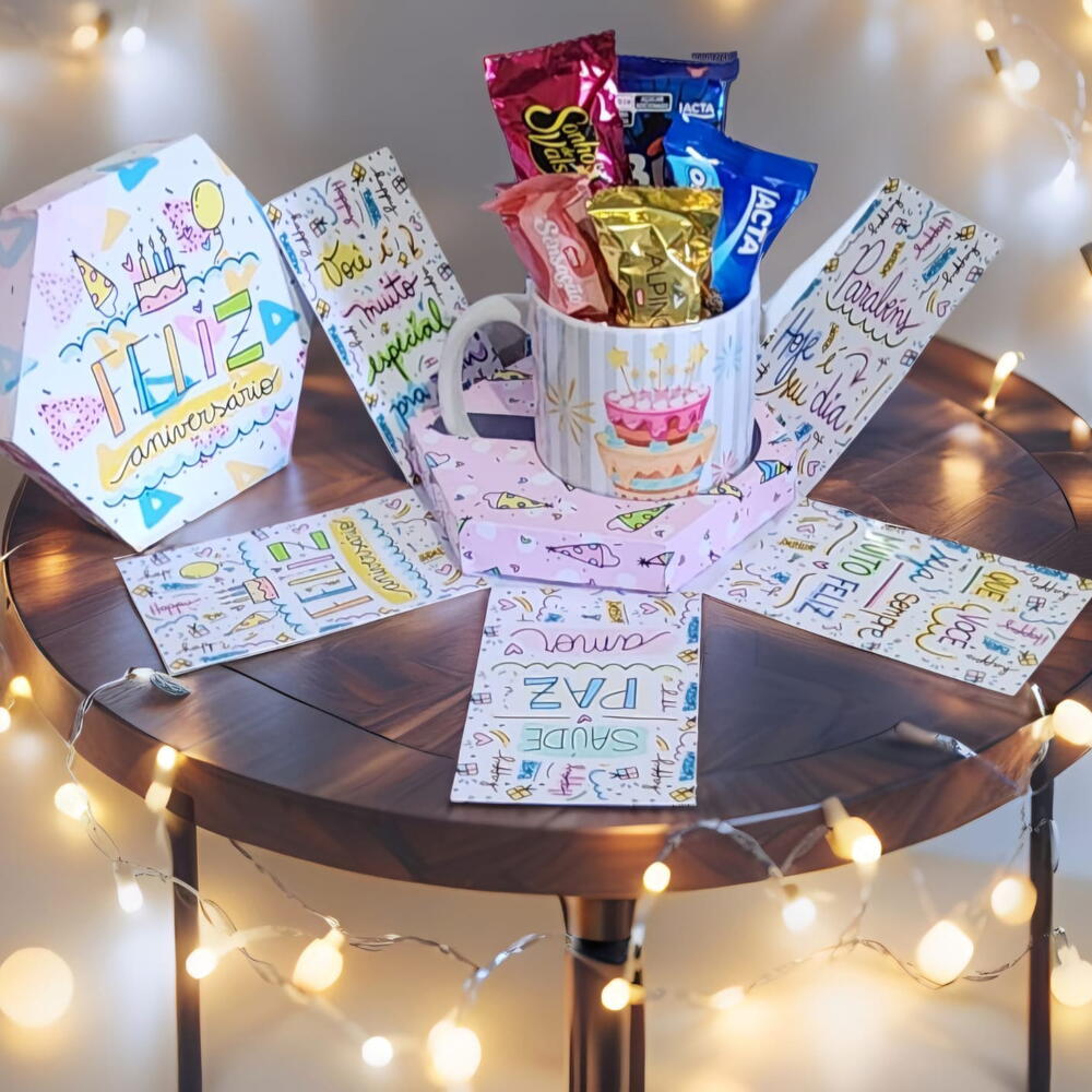 Surpreenda com nossa Caneca na Caixa Explosão! Mais do que apenas uma caneca, é uma explosão de estilo e sentimentos. Caixa Surpreendente: Embalada em uma caixa especialmente projetada para criar um momento mágico. A abertura é uma revelação de alegria. Adornada com mensagens de aniversário, é o presente perfeito para essa data que é tão especial. Momentos Especiais em Cada Gole: Seja para começar o Dia com energia ou relaxar à noite, cada momento com nossa Caneca é uma celebração. Presenteie com Emoção: É o presente perfeito para celebrar esse Dia tão especial. Itens na Caixa Explosão Feliz Aniversário Rosa: 1 Caneca Personalizada + 1 Bis 45g + 4 Bombons Sortidos (Nestlé e Lacta).