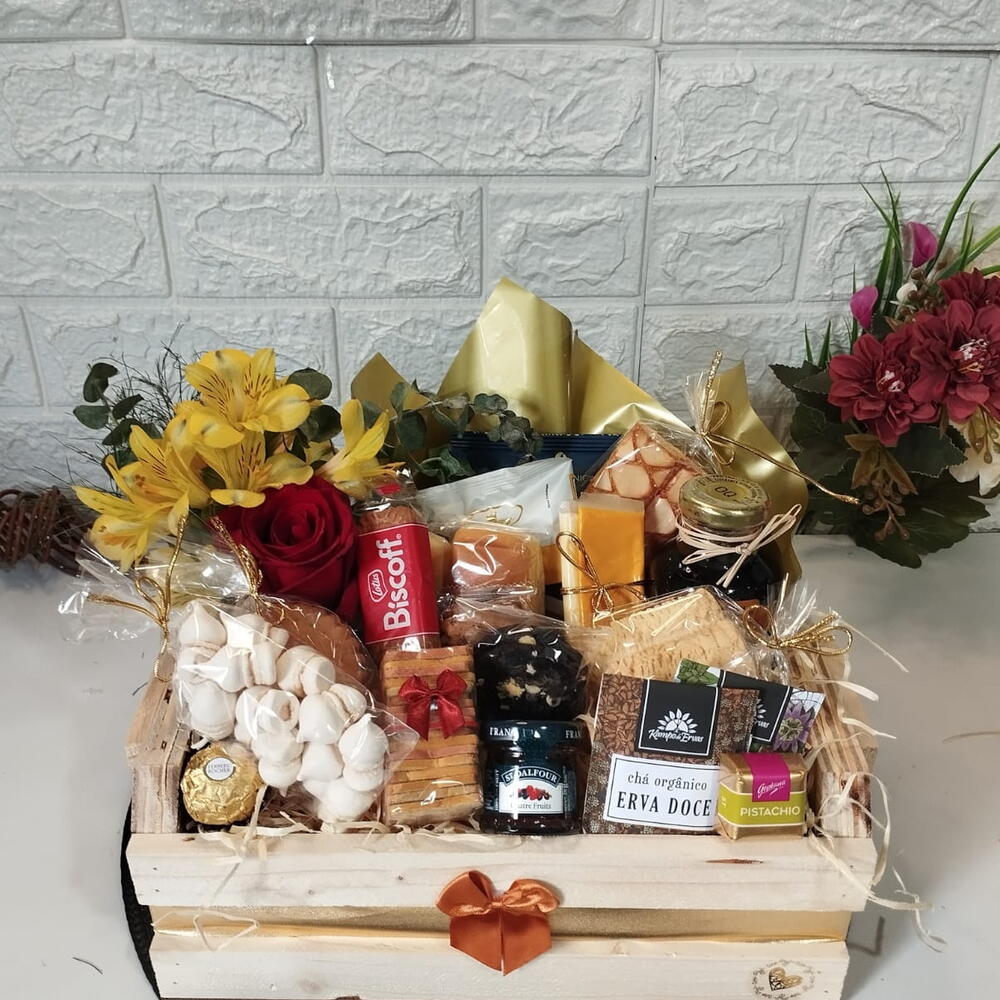 A Box Feliz Dia é um presente que envolve, emociona e acolhe – como o abraço. Com uma seleção refinada de delícias e toques florais, essa box transforma carinho em sabores e beleza. Ideal para presentear com ternura e surpreender quem você ama com um momento especial e inesquecível. Contém: 1 Belo e lindo vaso de Gerbera 1 Suco 100% integral 1 Sachê de chá orgânico 1 Sachê de capucino 1 Sachê biscoitos amanteigados 1 Sachê de weifell 1 Sachê c/biscoitos folhados 1 Sachê c/torradinhas 1 Geleia importada 1 Sachê c/suspiro 2 Queijos Polenguinho 1 Ferrro Rocher 1 Chocolate de psitache importado 2 Sachês de cookies 1 Sachê de paeszinhos 1 Sachê de queijo em fatias 1 caixote rústico de madeira com fita decorativa E uma porção generosa de amor