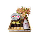 Este é um pacote especial de Presente com Bebida, perfeito para ocasiões comemorativas, festividades ou simplesmente para apreciar um momento relaxante. Contém deliciosos docinhos de festa que derretem na boca, com 8 unidades para você saborear ao máximo. Também acompanha uma unidade irresistível de bento cake, uma delícia culinária feita à mão. A bebida (consulte nossas opções) selecionada para estes mimos será sua refrescante companhia, juntamente com um mini buquê encantador. Isso tudo é entregue numa luxuosa bandeja, enfeitada com palha decorativa para realçar ainda mais seu presente. Este é um verdadeiro deleite dos sentidos!