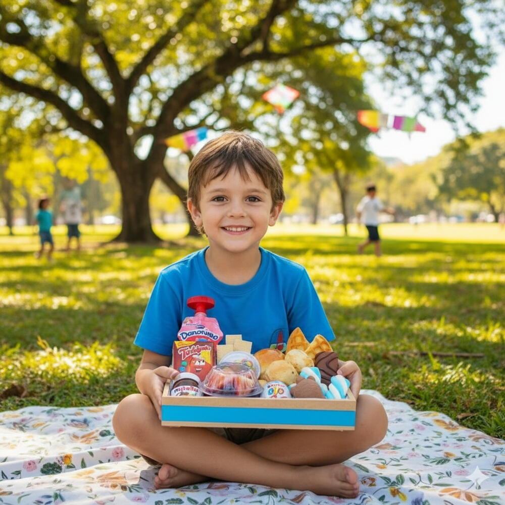 Encante seus pequenos com esta fascinante Cesta Infantil, repleta de delícias que vão fazer a alegria do seu dia. Este mágico conjunto de produtos contém um crocante wafer, quatro unidades do tradicional pão de queijo, um delicioso pão brioche e uma irresistível tortuguita. Um pote de Nutella de 140 gr e um Toddinho acompanham para dar mais sabor ao lanche. Não acaba aí, a cesta também inclui uma porção de marshmallows macios, uma unidade de doces confetes e uma caixa de MDF decorada com uma fita charmosa (disponível em azul ou rosa). O Kinder Ovo é uma surpresa divertida que vai animar a criançada. Um bolinho roll da marca Baduco e uma porção de uvas sem sementes proporcionam equilíbrio à cesta. Os pequenos vão adorar o Danoninho em saquinho e a porção extra de wafer. Uma cesta perfeita para presentear, surpreender e alegrar.