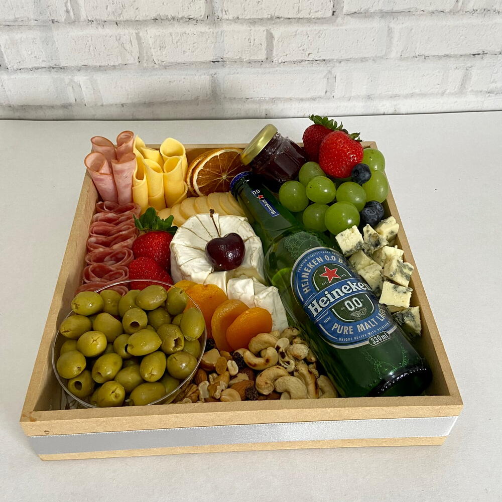 salame - 1 un. geleia - 1 un. uvas - 1 un. morangos - 1 un. damasco - 1 un. laranja desidratada - 1 un. lombo canadense - 1 un. queijo brie - 1 un. azeitonas - 1 un. mix de castanhas - 1 un. queijo prato - 1 un. cartão dedicatória - 1 un. gorgonzola - 1 un. provolone - 1 un. caixa em madeira mdf 25x25 - 1 un.