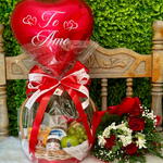 ouro branco - 1 un. bolinho bauducco (40g) - 1 un. iogurte grego nestlé - 1 un. salgados assados - 2 un. maçã importada - 1 un. torrada toast bauducco - 1 un. cesta de vime com embalagem decorativa e laço artesanal - 1 un. bisnaguinhas aproximadamente 100gr - 1 un. uvas selecionadas sem sementes - 1 un. balão corarão te amo 45 cm - 1 un. amandita 200gr - 1 un. suco uva integral garibaldi 500ml - 1 un. buquê com flores - 1 un.