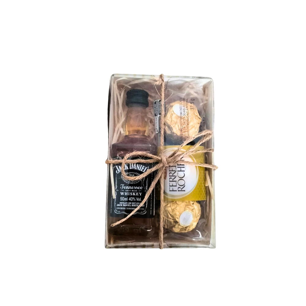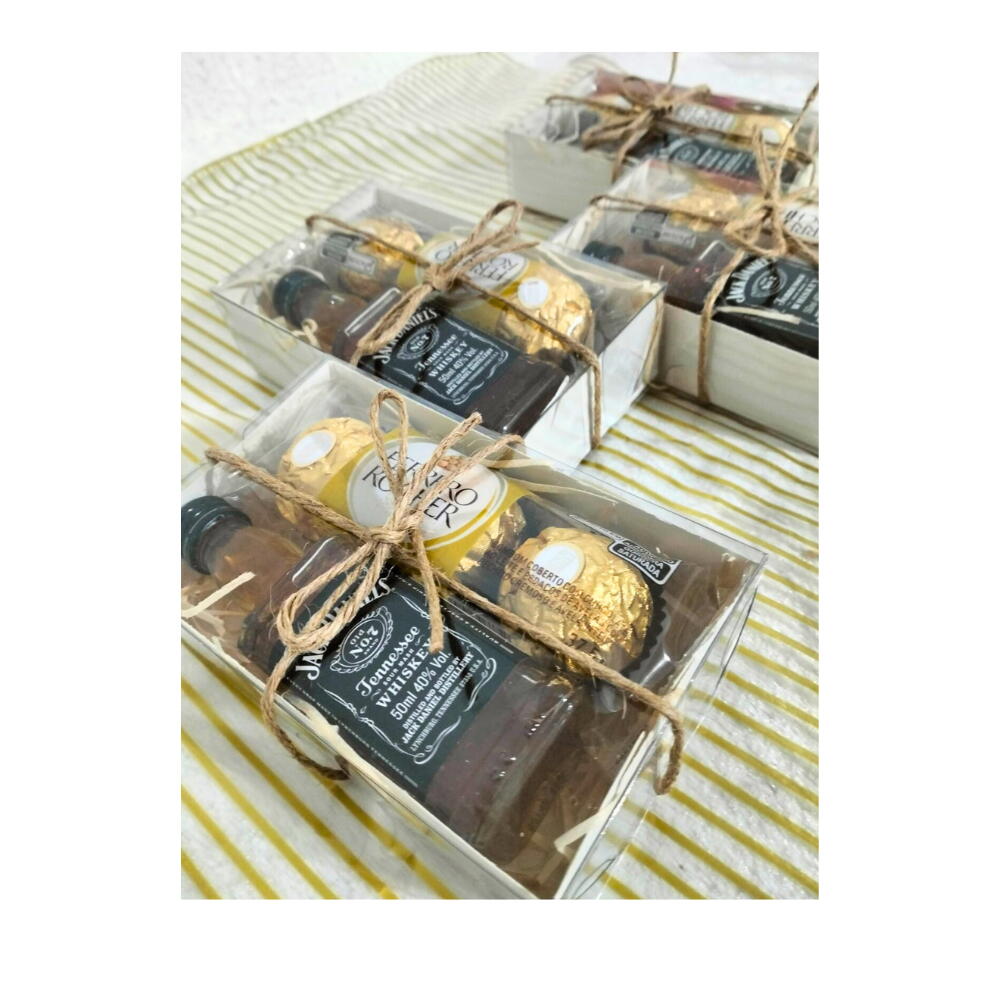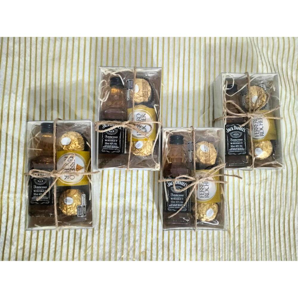 caixa kraft - 4 un. ferrero rocher t3 - 4 un. mini wisky 50ml - 4 un.