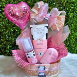 cesta - 1 un. mini balão - 1 un. laço em cetim - 1 un. desodorante - 1 un. body splash - 1 un. creme - 1 un. kit de leite o boticário - 1000 gr.