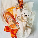Este belo conjunto de presente de maternidade é o artigo de luxo perfeito para o novo bebé da família. Com uma unidade de shampoo, lenço umedecido, o admirado condicionador Granado bebê, um creme Nadinha e uma barra de sabonete da Johnson, este conjunto vem completo com todos os produtos de limpeza necessários para o seu bebé. Complementado por um toque final de elegância - um raminho de flores desidratadas. É o presente perfeito para acolher o novo membro da família.
