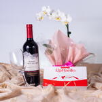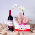 Uma celebração à altura dos mais refinados gostos. Este presente reúne a beleza atemporal da orquídea Phalaenopsis, símbolo de elegância e delicadeza, com a intensidade de um vinho tinto selecionado, perfeito para momentos de contemplação e prazer. Acompanha uma taça de vidro requintada e deliciosos chocolates Raffaello — um toque de suavidade e sofisticação da confeitaria italiana. Um gesto que encanta pelos sentidos, ideal para surpreender com classe, afeto e bom gosto.