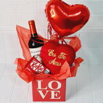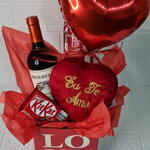 kit kat 41 g - 1 un. coração pelúcia p - 1 un. vinho tinto 750 ml - 1 un. balão 10 p - 1 un. biscoito doce 78 g - 1 un. caixa de papelão love - 1 un.