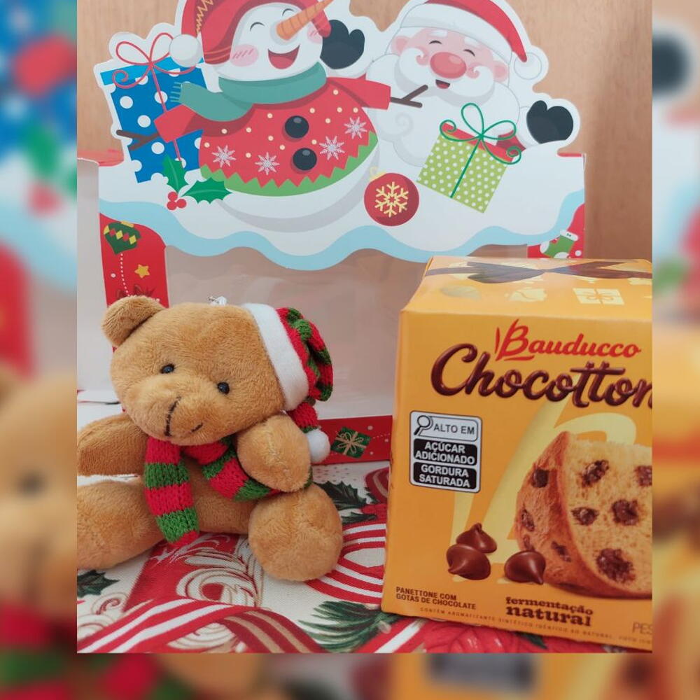 chocottone bauducco 80g - 1 un. maleta natalina - 1 un. peluciachaveiro natal - 1 un.