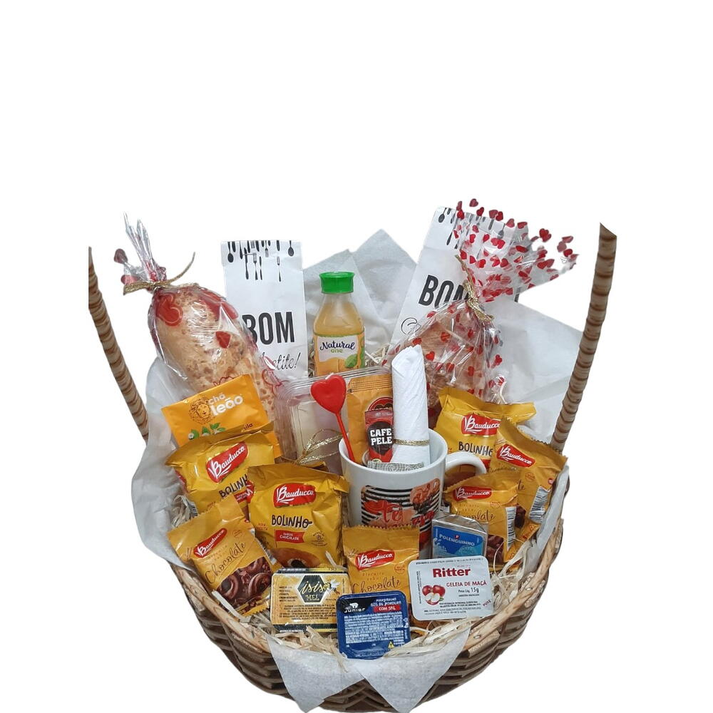 Descubra a delícia de iniciar o dia com a nossa deslumbrante Cesta de Café da Manhã. recheada com iguarias para uma refeição matinal equilibrada e deliciosa. A cesta inclui uma baguete fresca e um croissant, perfeitos para acompanhar com as suculentas fatias de presunto e queijo. Para uma experiência mais adocicada, a cesta contém sachês de chá, café e cappuccino, que se harmonizam perfeitamente com a nossa sofisticada caneca de porcelana. Ainda, para incrementar sua refeição, oferecemos um sachê de açúcar, blister de manteiga, geleia e mel. E ainda contém deliciosos adicionais como polenguinho, duas torradas crocantes, quatro biscoitos amanteigados e três bolinhos Bauducco para finalizar sua refeição com um toque doce. Desfrute do sabor excepcional e comece o dia com energia e satisfação.