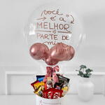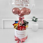A caixa Melhor Parte de Mim traz chocolates finos e deliciosos, acompanhados de um balão colorido, transmitindo carinho e afeto. Um presente perfeito para celebrar momentos especiais e doces emoções.