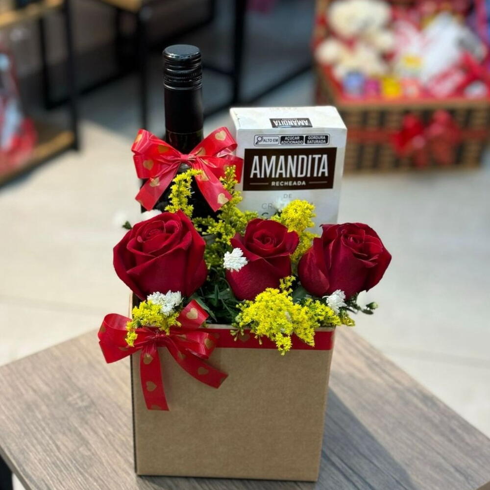 rosa - 4 un. chocolate - 1 un. bebida - 1 un. caixa (box) - 1 un.