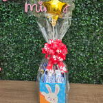 Cestas de chocolate luxuosamente apresentados, cheios de bombons diversos para apaixonados por chocolate em todos os lugares. Cada cesta vem no mini cachepot temático Páscoa (11x11 cm) para adicionar um toque de celebração à sua entrega. A cestinha fica ainda mais festiva com um balão estrela, um laço decorado e uma tag para mensagens pessoais. Tudo embalado de maneira elegante em celofane para manter a frescura e atração dos doces. Surpreenda alguém especial com este delicioso regalo, perfeito para a Páscoa!