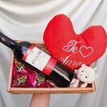 Mini Bandeja com Vinho, Chocolate e Pelucia