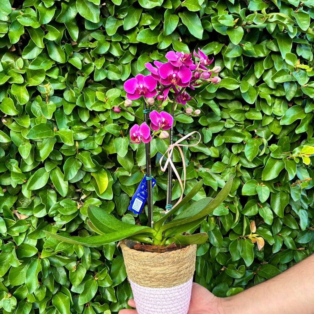 Encantadora e delicada, essa mini orquídea phalaenopsis traz charme e elegância em cada flor. Com tons vibrantes de rosa, ela simboliza admiração, amor e beleza. Ideal para presentear ou decorar com um toque de sofisticação. Acompanha um vaso trançado decorativo que valoriza ainda mais sua presença.