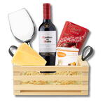 vinho especial (375ml) - 1 un. taça elegante - 1 un. queijo gourmet - 1 un. lindt 37g clássico - 1 un. mix de castanhas selecionadas - 1 un.