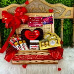 Delicie-se com a nossa deslumbrante Cesta de Chocolate, repleta de doces delicados. Dentro desta luxuosa cesta de vime, você encontrará um quarteto de Kinder Bueno, um deleite indiscutível para qualquer amante de chocolate. Para completar, adicionamos uma spread característico e inconfundível da Nutella, uma almofada romântica para adicionar um toque de conforto, e uma variedade de chocolates Nutella Bready e Alpinos, perfeitos para a indulgência. Enfatizamos ainda três Ferreros Rocher bem crocantes, um detalhe incrível para quem adora um toque de luxo. Toda a cesta está embrulhada com um laço artesanal exclusivo que acentua a beleza do conjunto. Adicionamos uma elegante embalagem decorativa para tornar esta cesta de chocolate a escolha perfeita para um presente sofisticado.