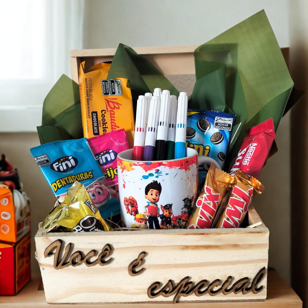 chocolate ouro branco - 1 un. baú mdf - 1 un. biscoito mini oreo; - 1 un. chocolate suflair; - 1 un. chocolate sonho de valsa; - 1 un. chocolate twix 15g; - 1 un. canetinhas hidrograficas; - 1 un. coockies bauducco; - 1 un. caneca de cerâmica para pintar patrulha canina 330ml; - 1 un. finis 20g; - 2 un.