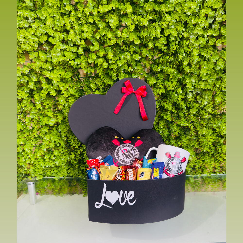 Um presente criativo e cheio de personalidade para torcedores apaixonados pelo Timão! Montado com carinho em uma box decorativa em formato de coração, este kit especial acompanha: • ️ 1 Almofada temática do Corinthians – conforto e amor pelo time em um só presente • 1 Xícara do Corinthians – perfeita para acompanhar os melhores jogos • Bombons diversos – para adoçar a emoção de ser corinthiano Ideal para surpreender em aniversários, datas comemorativas ou como uma homenagem cheia de carinho para aquele torcedor fiel que mora no seu coração!