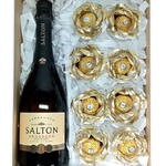 O premiadíssimo Salton Prosecco, dentro de uma caixa decorada com lindas flores de bombons Ferrero. É um presente que agrada e deve estar presente em toda comemoração.