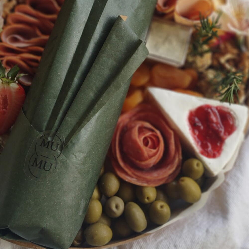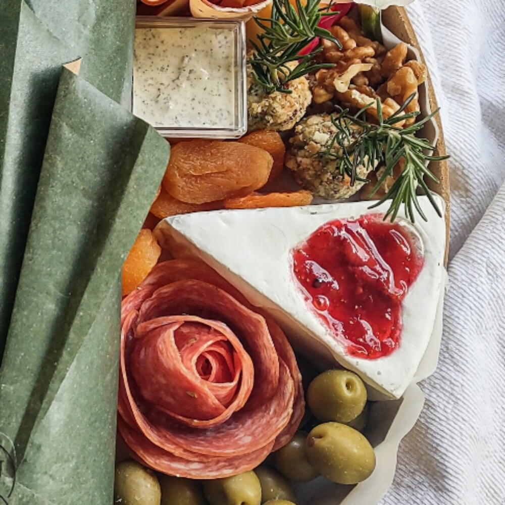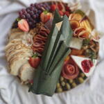 queijo provolone - 1 un. queijo brie - 1 un. queijo gouda - 1 un. nuts - 1 un. lombo defumado - 1 un. geleia artesanal - 1 un. copa e salame - 1 un. uva e morango - 1 un. espetinho caprese - 1 un. molho pesto - 1 un. damasco e azeitonas - 1 un. pão ou torrada - 1 un. vinho ou lambrusco - 1 un.