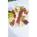 chocolate - 1 un. salame - 1 un. queijo parmesão - 1 un. uva - 1 un. damasco - 1 un. morango - 1 un. queijo brie - 1 un. queijo gouda - 1 un. queijo gorgonzola - 1 un. copa - 1 un. patê de azeitona preta - 1 un. tábua laminada mdf - 1 un. figo - 1 un. geléia artesanal de morango - 1 un.