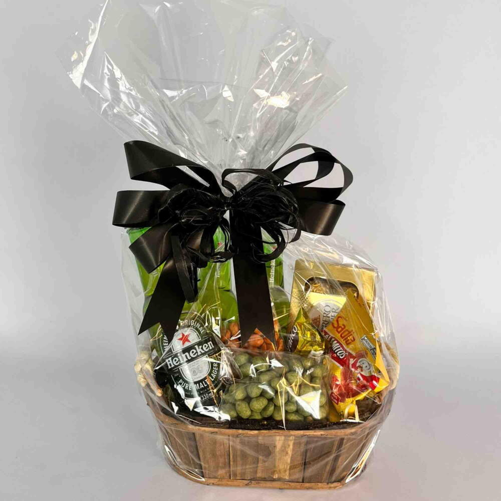 Este presente com bebida é composto por uma charmosa tina de madeira, onde encontramos uma variedade de sabores para deleitar o paladar. Contém uma unidade de cerveja Heineken longneck de 330ml, perfeita para degustar nos momentos de relaxamento. Além disso, acompanha três porções de amendoins temperados, ideais para petiscar durante um bate-papo descontraído. Para os amantes de sabor defumado, conta com duas porções de Salamitos Snack Sadia de 36g. Para adocicar a experiência, vem com uma caixa da sofisticada Ferrero Rocher com 8 unidades e um bombom Ouro Branco, ambos com sabores irresistíveis. Por último, mas não menos importante, todo esse conjunto vem em uma linda embalagem para presente, finalizada com um laço, tornando este brinde ainda mais especial.