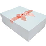 caixa decorada com laço de fita de cetim - 1 un. vinho freixenet rosado 750 ml - 1 un. caixa de bombons ferrero 08 unidades - 1 un. ramo de astromélia - 1 un.