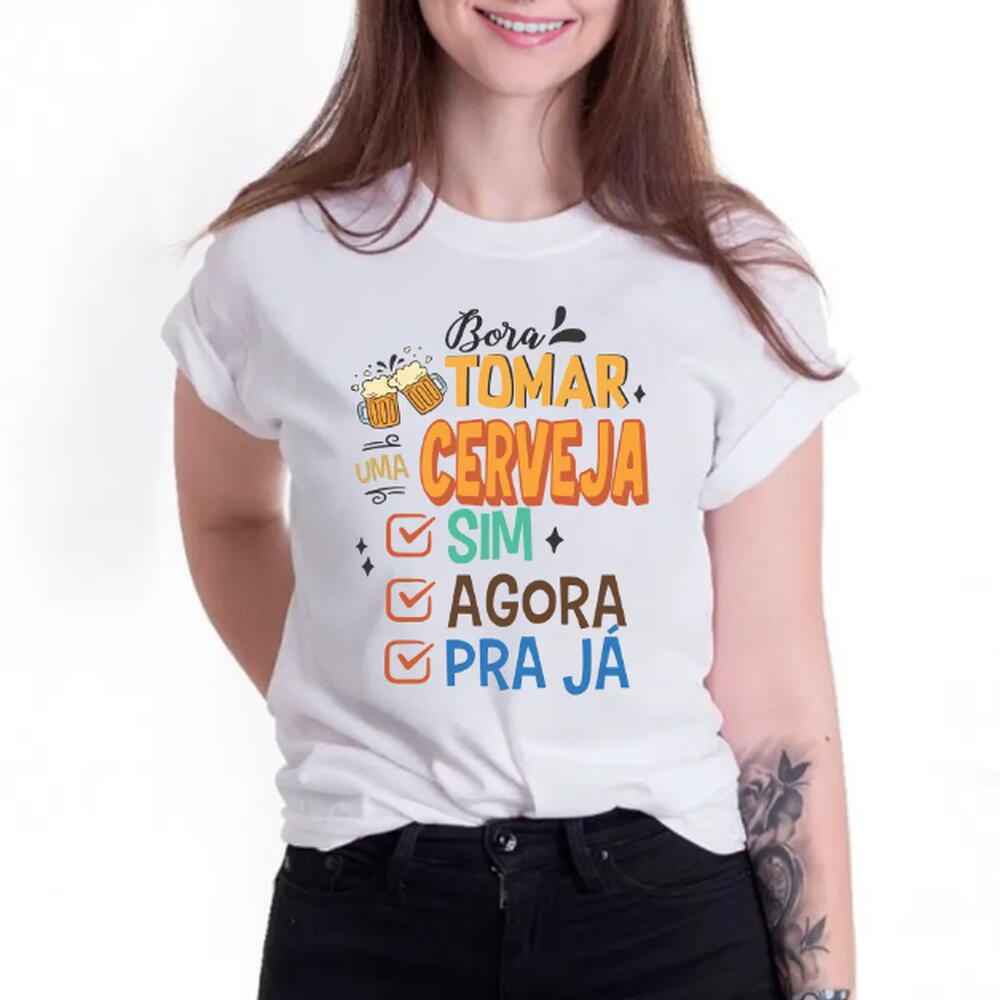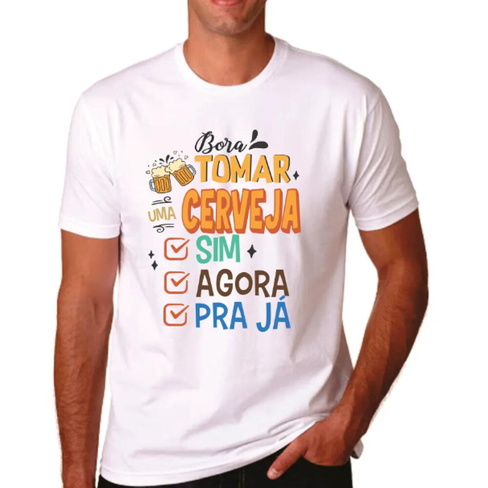 Camiseta Bora Tomar Cerveja: Sim, Agora, Pra Ja (malha poliester encorpada)