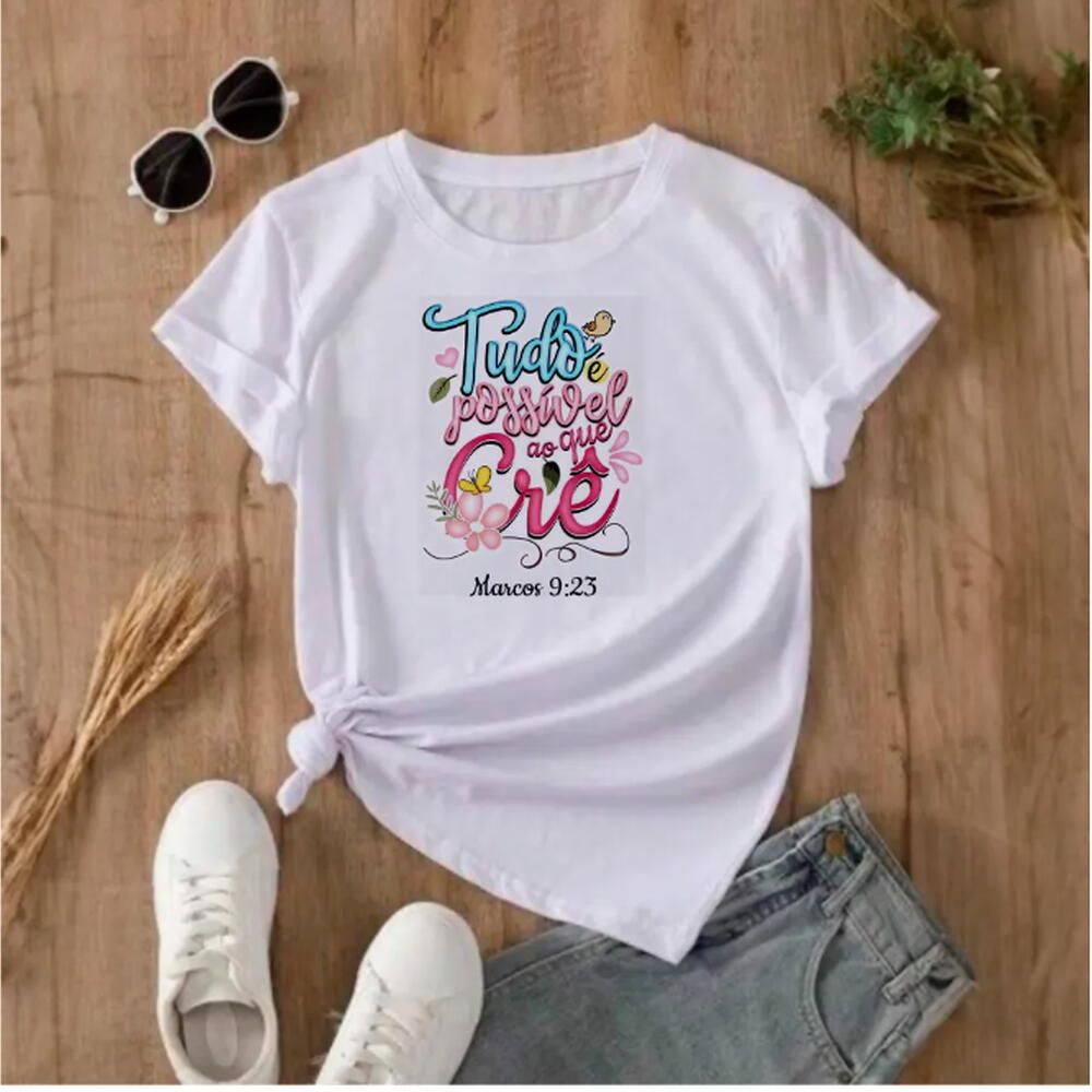 Camiseta Frase Evangelica com Versiculo e Leão de Juda